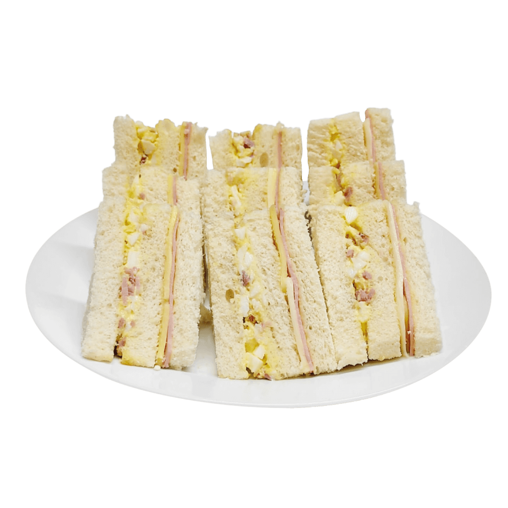 Pan de molde blanco, tocino, jamón, queso, huevo y mayonesa.