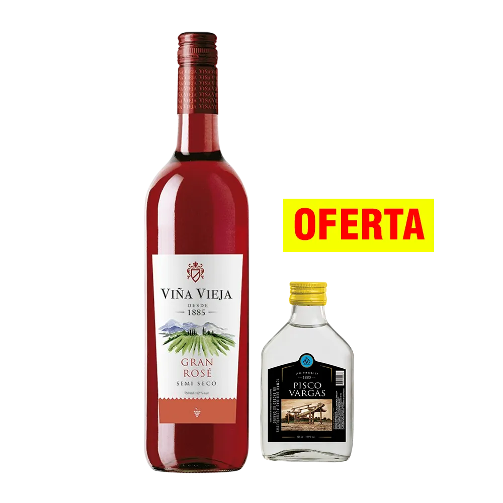 Vino Viña Vieja Rosé 750ml + Pisco Vargas 125 ml